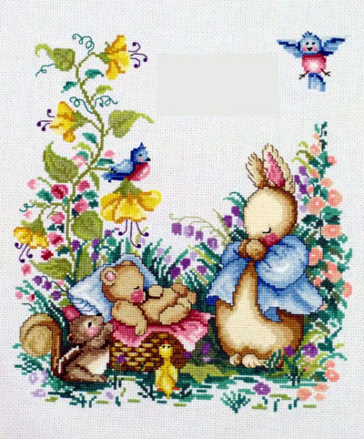 完成品は右の鳥と左のお花の間に息子の名前と生年月日が入ってます。