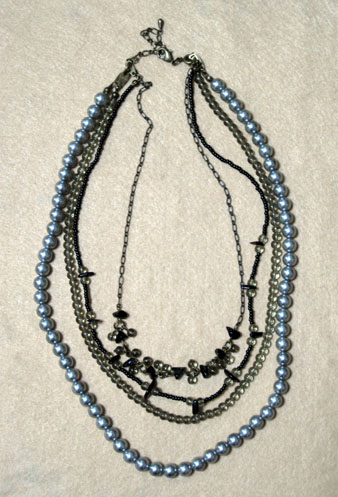 4つのネックレスをひとつに繋げてゴージャスに見せるのに