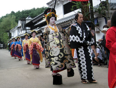 次に屋内のステージで舞台(北町奉行の人と半分同じ人でした。かけもちですごいなぁ)を見て、おひねり投げて(笑)、花魁道中の場所取り!!